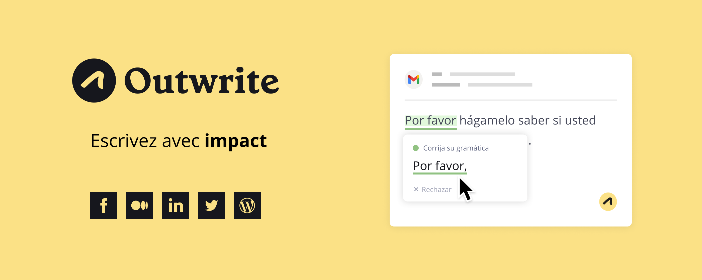 Si vous utilisez déjà Outwrite, vous pouvez relire et corriger en espagnol en changeant votre langue dans les paramètres. Sinon, si vous avez installé la dernière version de notre extension sur le navigateur Chrome, nous passerons automatiquement de votre langue préférée à celle détectée dans votre texte (du moment que cette dernière est disponible sur Outwrite).